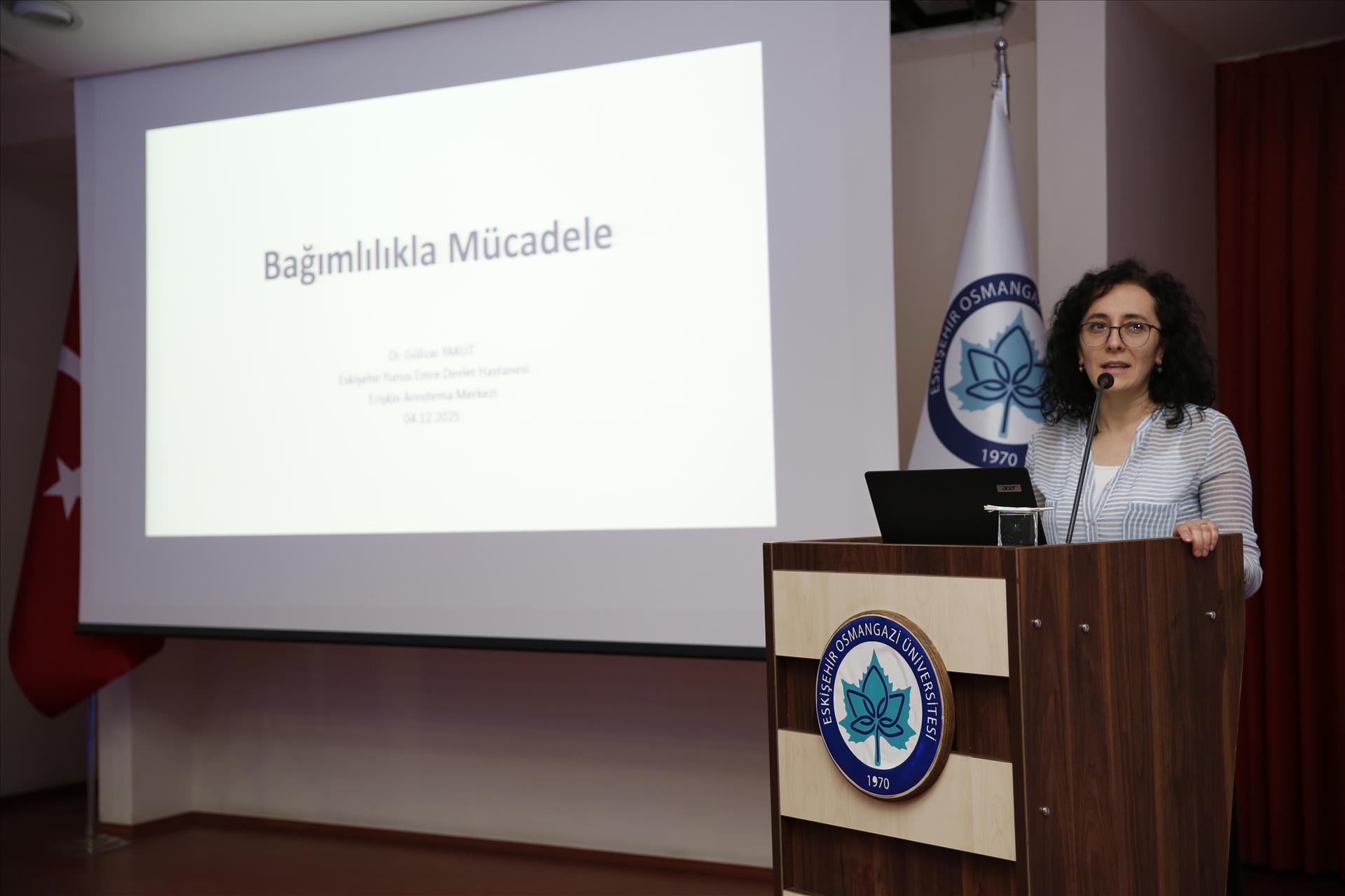 The event titled “Combating Addiction Seminar: Notice – Protect – Liberate”, organized by the Faculty of Health Sciences Dean’s Office Combating Addiction Committee, was held on December 4, 2025, at the ESOGÜ Faculty of Economics and Administrative Sciences, Prof. Dr. Fazıl Tekin Conference Hall. The seminar received great interest from students, with 169 participants attending.